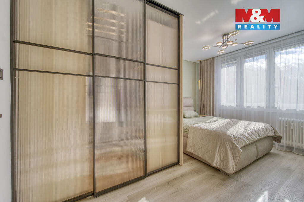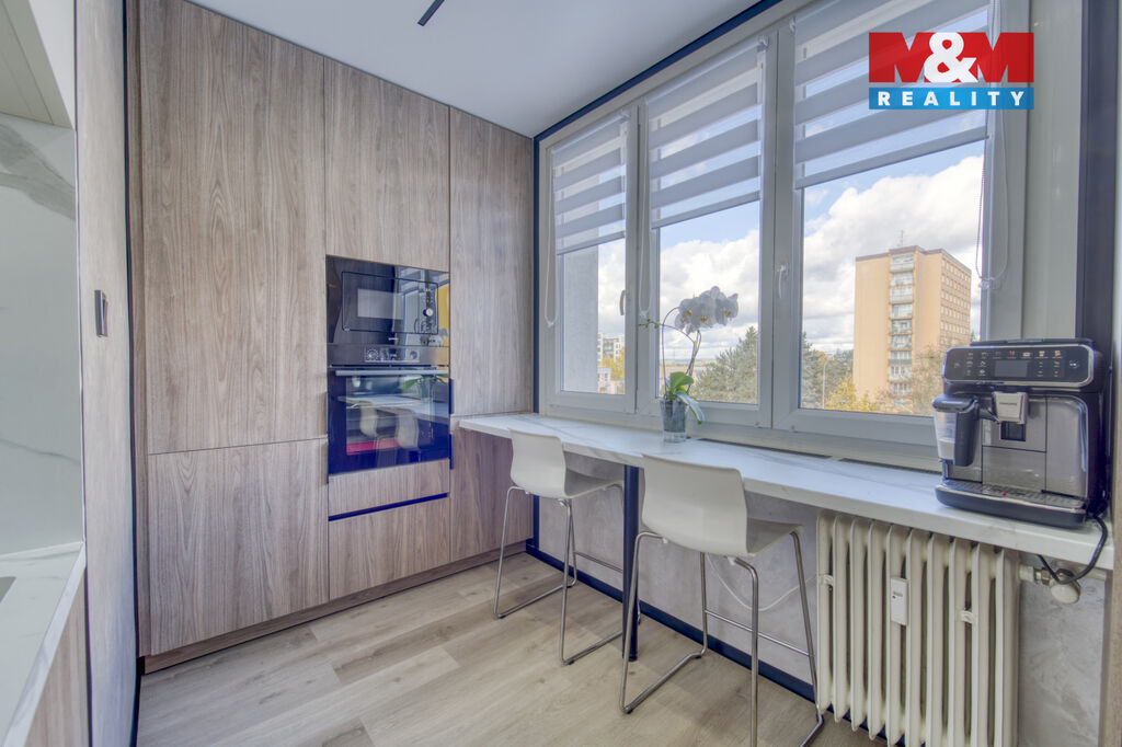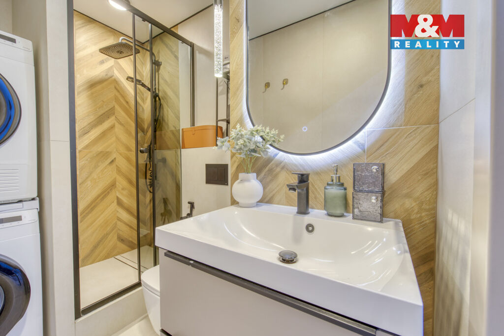 Byt prošel kompletní a nadstandardní rekonstrukcí v moderním designu. Nová elektroinstalace, rozvody vody, podlahy, dveře a omítky. Moderní kuchyňská linka na míru s vestavěnými spotřebiči. Stylový obývací pokoj s podsvícením. Prostorná jídelna s designovým osvětlením. Koupelna a WC po rekonstrukci v neutrálních barvách. Kvalitní podlahové krytiny, LED osvětlení, úložné prostory