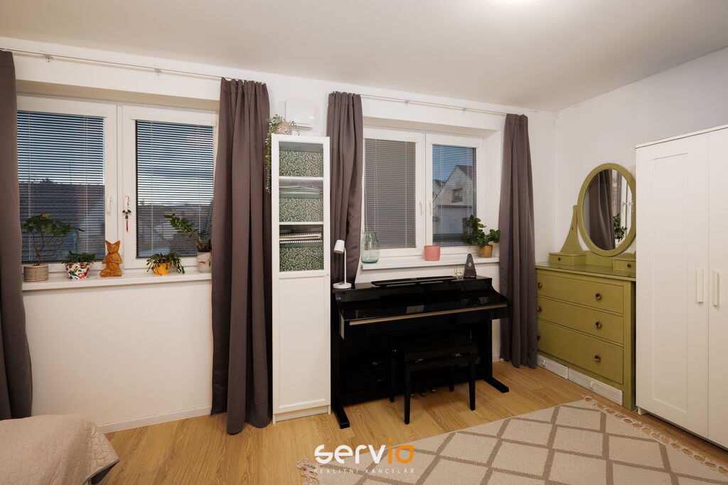 Vybavení bytu: Kuchyňská linka včetně zabudovaných spotřebičů (sklokeramická deska, el. trouba, lednice, myčka), klimatizace. Vytápění zajišťuje plynový kotel. Možnost parkování před domem.