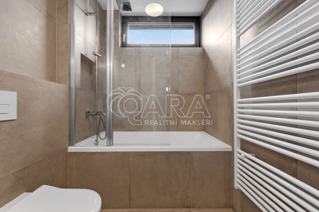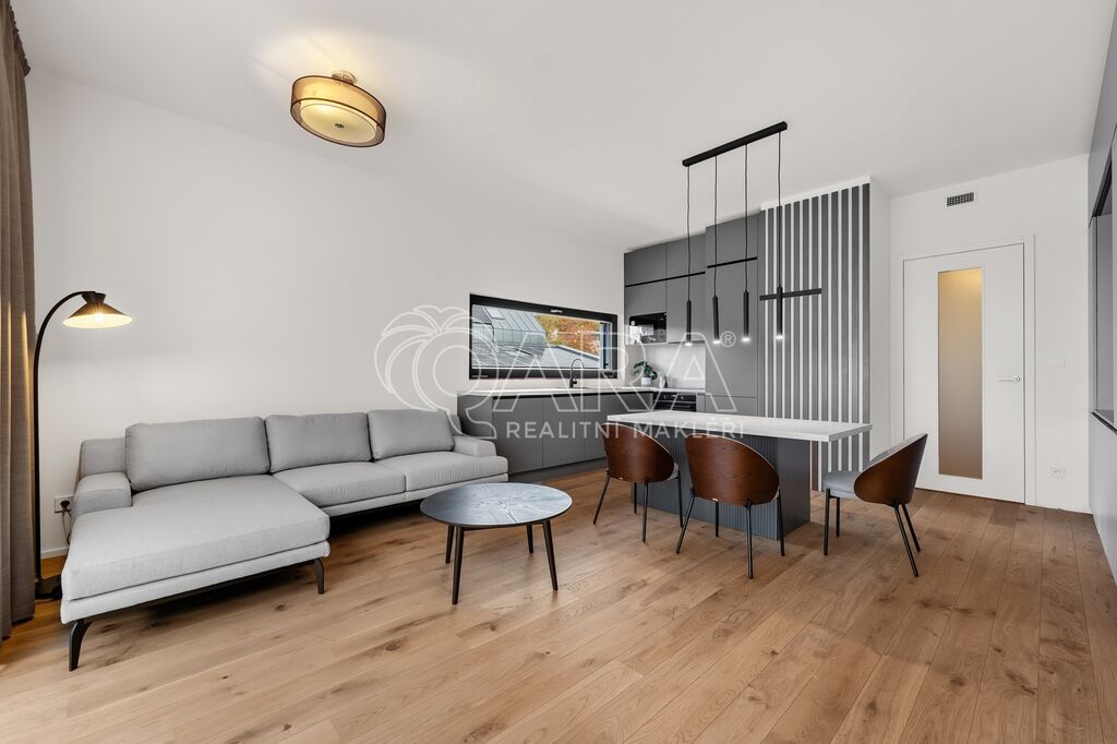 Byt je vybaven stropním vytápěním a chlazením, centrálním větráním s rekuperací, venkovními žaluziemi a chytrou domácností, kterou lze ovládat na dálku. Kvalitní dřevěné podlahy, vestavěný nábytek a prvotřídní spotřebiče tvoří harmonický celek, který uspokojí i ty nejnáročnější nájemce.