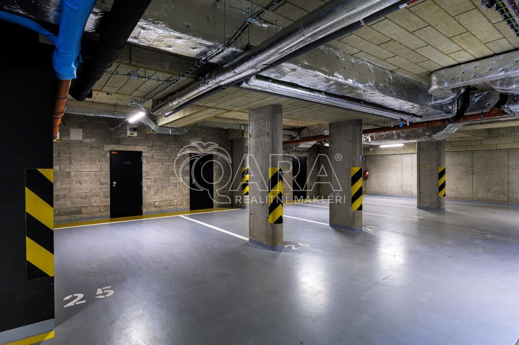 K bytu náleží 1 garážové parkovací stání, druhé je možné pronajmout za poplatek 2 000 Kč/měsíc, a dále sklepní kóje v ceně.