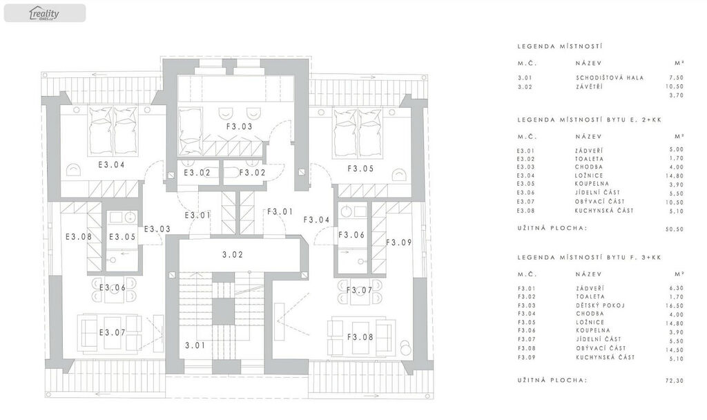 Rozmístění bytových domů je znázorněno v inzerci podle návrhu: