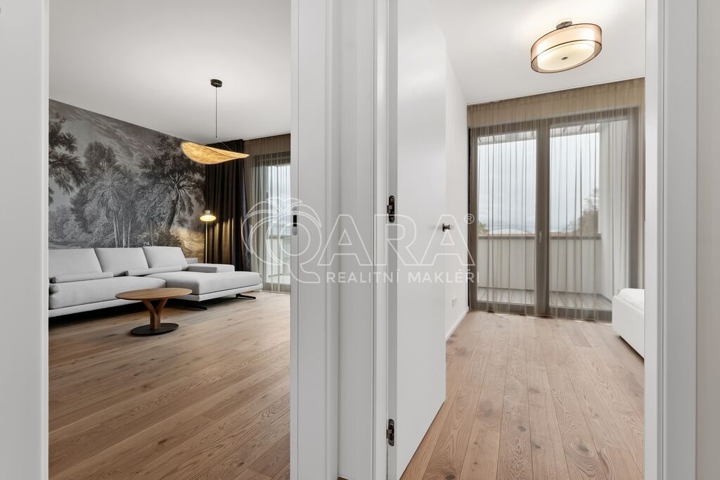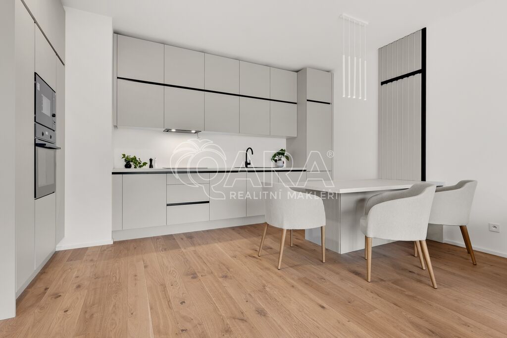 Byt je vybaven stropním vytápěním a chlazením, centrálním větráním s rekuperací, venkovními žaluziemi a chytrou domácností, kterou lze ovládat na dálku. Kvalitní dřevěné podlahy, vestavěný nábytek a prvotřídní spotřebiče tvoří harmonický celek, který uspokojí i ty nejnáročnější nájemce.