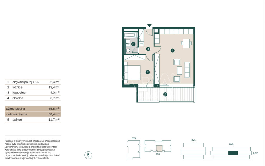 Luxusní byt 2+kk s balkonem, sklepem a až dvěma parkovacími místy v rezidenci Bella Vista – Praha 7, Troja.