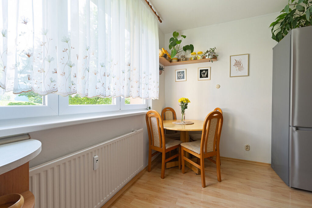 Vytápění je centrální dálkové, voda a odpady jsou v plastu, elektroinstalace je z větší části již v mědi (chodba, kuchyně, koupelna, toaleta), zbytek původní. Stav bytu je velmi dobrý – není potřeba okamžitých investic, můžete se ihned pohodlně nastěhovat. Byt je volný již od července 2025.