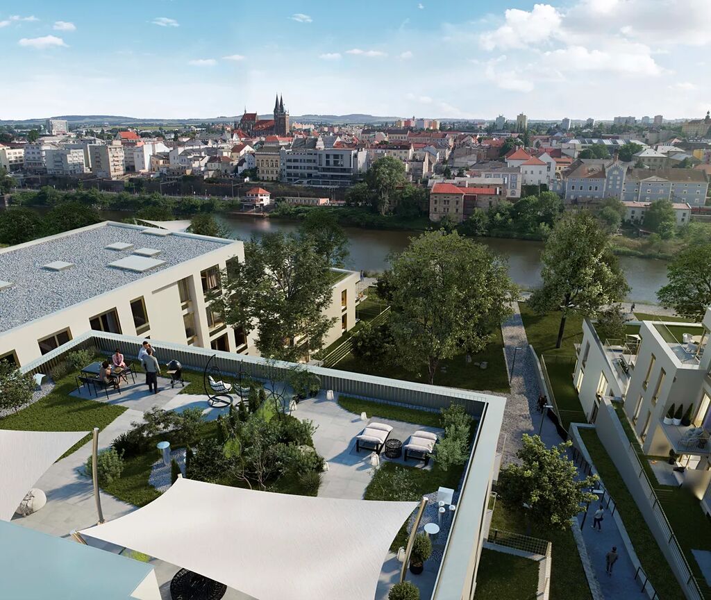 Při návrhu rezidenčního řešení lokality jsme kladli velký důraz na kvalitu architektury a respektování unikátnosti místa a jeho bohaté historie. Součástí projektu je i rekonstrukce historické budovy Radimského mlýna, rozšíření cyklostezky na nábřeží a ve spolupráci s Povodím Labe vybudování přístavního mola na řece.