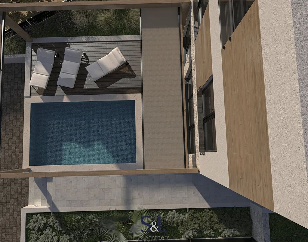 Jeden z největších benefitů vily je venkovní bazén 5 x 3 metry, který je vybaven moderní technologií pro udržitelnost a pohodlí. Ohřev vody zajišťuje teplené čerpadlo, čistění probíhá pomocí elektrolytické filtrace slanou vodou, která minimalizuje použití chemie a je šetrnější k pokožce.
