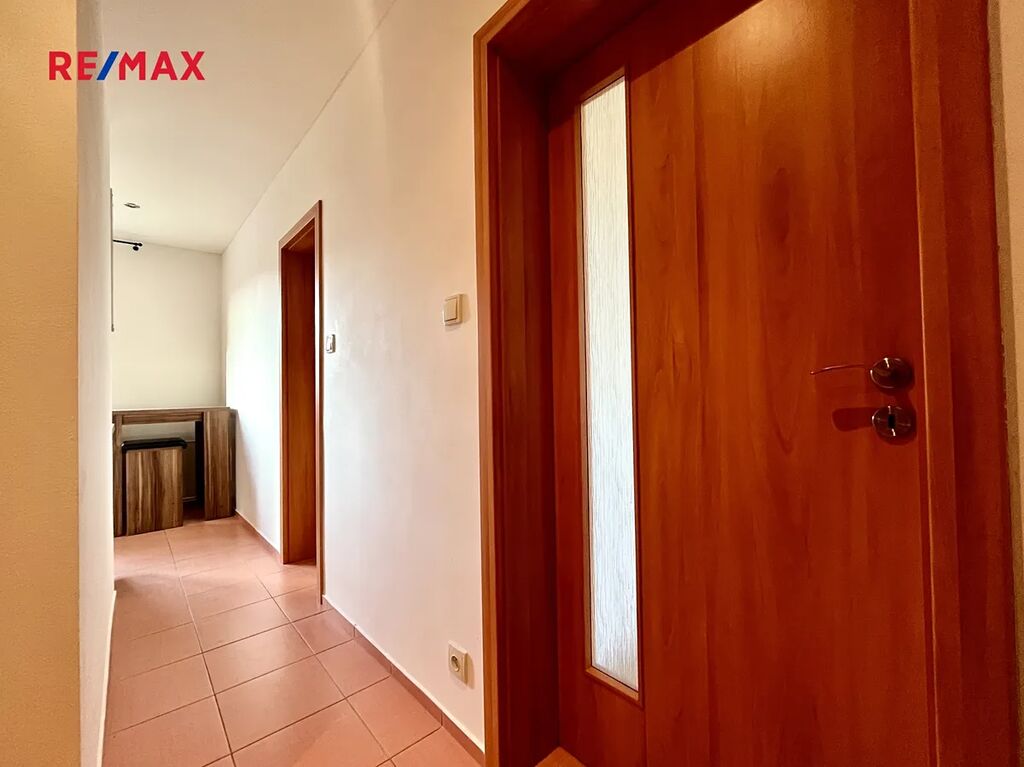Byt se skládá ze dvou neprůchozích pokojů (u jednoho z nich je balkon), dále z kuchyně, koupelny s rohovou vanou a samostatného WC. Okna jsou plastová, na podlahách v pokojích jsou dřevěné parkety. Kuchyňská linka je vybavena plynovou varnou deskou, elektrickou troubou, pračkou a lednicí. V kuchyni je jídelní barový stolek se dvěma židlemi. Jinak je byt nevybavený. K bytu náleží sklepní kóje v suterénu domu.