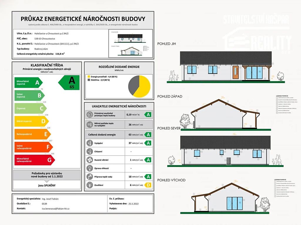 Energetická náročnost: A (velmi úsporný dům)