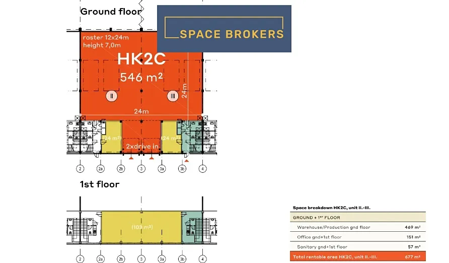 - nejmenší jednotky cca 350 až 1.100 m2, kancelářské a sociální zázemí na míru dle požadavků klienta.