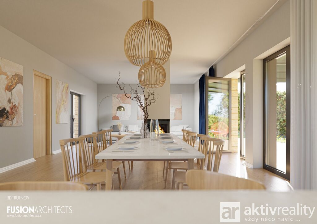 Projekt domu navrhl úspěšný architekt s důrazem na nadčasový vzhled, praktičnost a harmonické propojení interiéru s okolní přírodou.