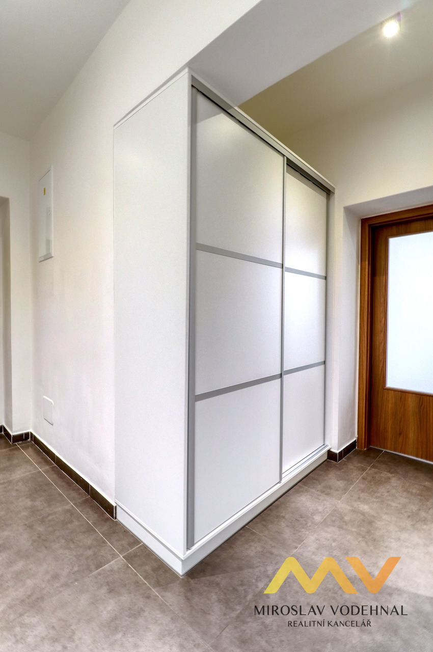 Dispozice: obývací pokoj s kuchyňským koutem (18,48 m2), ložnice 14,44 m2, koupelna (6,23 m2), toaleta 2,2 m2 předsíň (9 m2), sklep (7,56 m2). Jedná se o částečně zařízený byt, obývací pokoj s kuchyňským koutem je vybaven novou kuchyňskou linkou na míru se spotřebiči (el. sklokeramická varná deska, el. trouba, odsavač par). Ložnice je zcela nezařízená s francouzským oknem s výhledem do sousedních zahrad. Prostorná koupelna s vanou, umyvadlo, přípojka na pračku. Toaleta je samostatná se závěsným WC a umyvadlem. V předsíni jsou velké vestavěné úložné prostory (skříně) na míru. Vytápění podlahové elektrické s LCD ovládáním teploty každé místnosti, ohřev vody el. bojlerem (160 l), osvětlení LED, internet zaveden. Okna plastová se žaluziemi. Plovoucí podlaha v pokojích, v koupelně a předsíni dlažba. K dispozici je prostorný sklep 8 m2. Dům prošel kompletní rekonstrukcí a dá se považovat za novostavbu. Velmi klidné místo s možností bezplatného parkování přímo u domu. Centrum města 8 min. chůze, MHD, kompletní občanská vybavenost v místě. Byt určen max. pro 2 osoby, bez zvířat, nekuřáci.