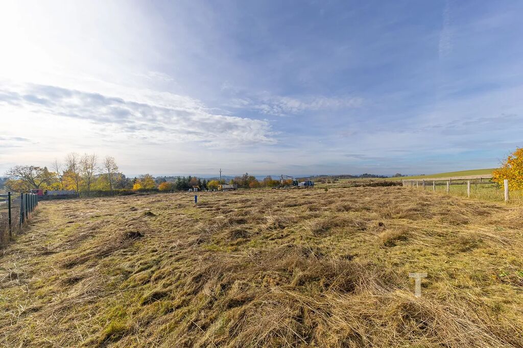 Pozemek je mírně svažitý, obdélníkového tvaru, oplocený. Je z něj hezký výhled na okolí.