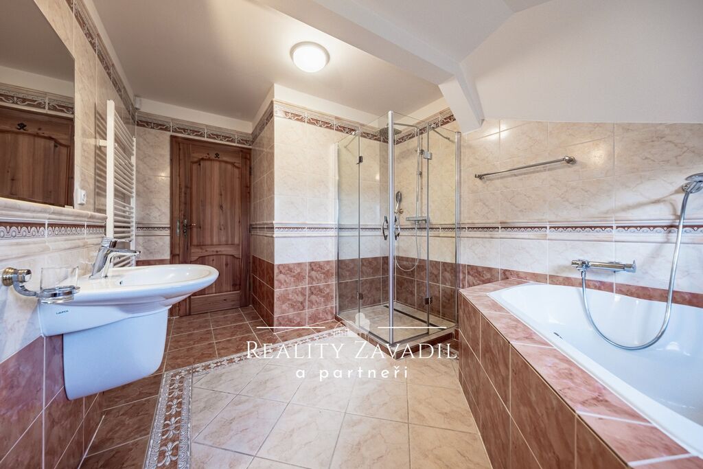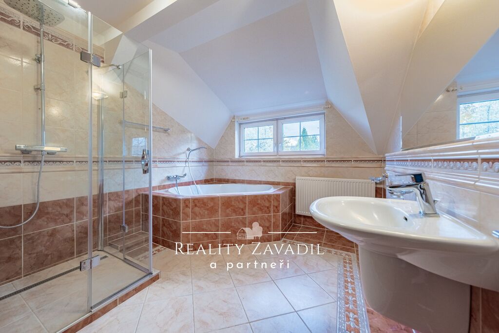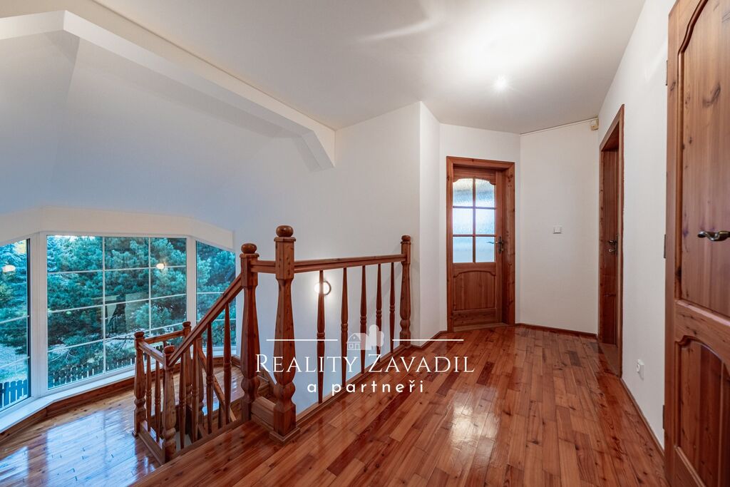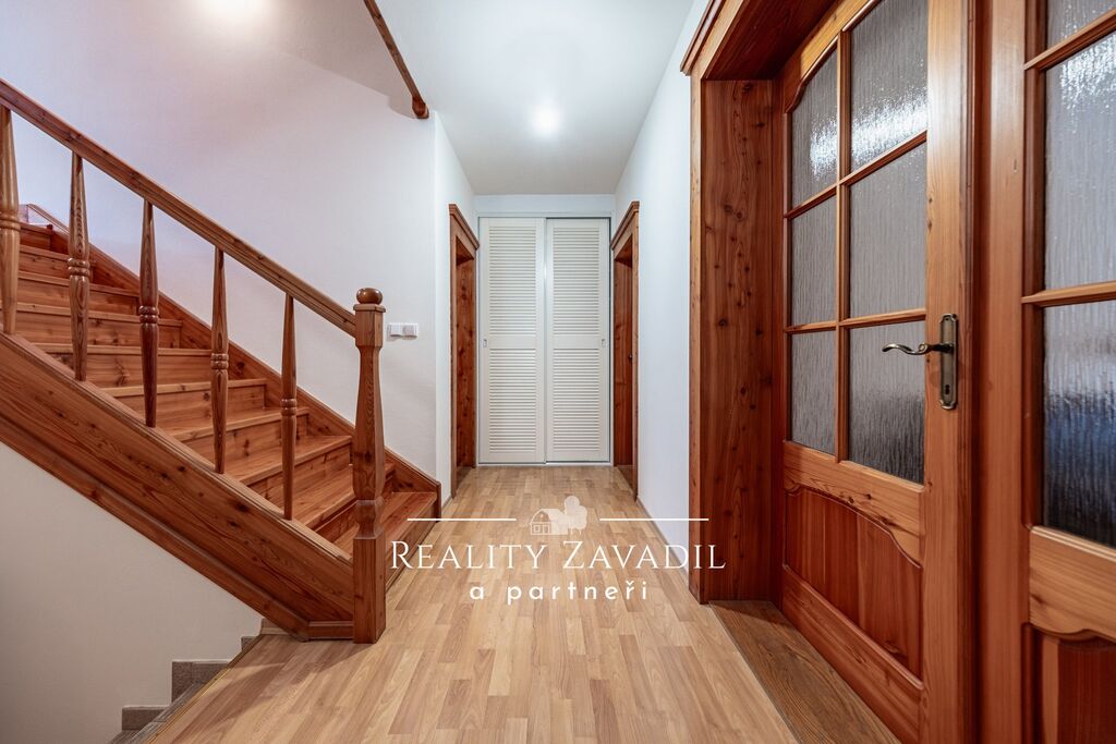 Dům je částečně podsklepený a má dvě nadzemní podlaží. V suterénu se nachází technické zázemí pro celý dům a sklad. V 1. NP je velkorysý obývací pokoj s kuchyní , ložnice s vlastní koupelnou a samostatné WC. V 2. NP jsou čtyři pokoje, koupelna s vanou, sprchovým koutem a samostatné WC. Dům je vytápěn plynovým kotlem, odpad je řešen vlastní čističkou odpadních vod. Náklady na bydlení jsou zde nízké.  Dům byl zkolaudován v roce 1997 a následně prošel částečnou rekonstrukcí( výměna střešních oken, rekonstrukce střechy, částečná výměna podlah, výměna kotle).