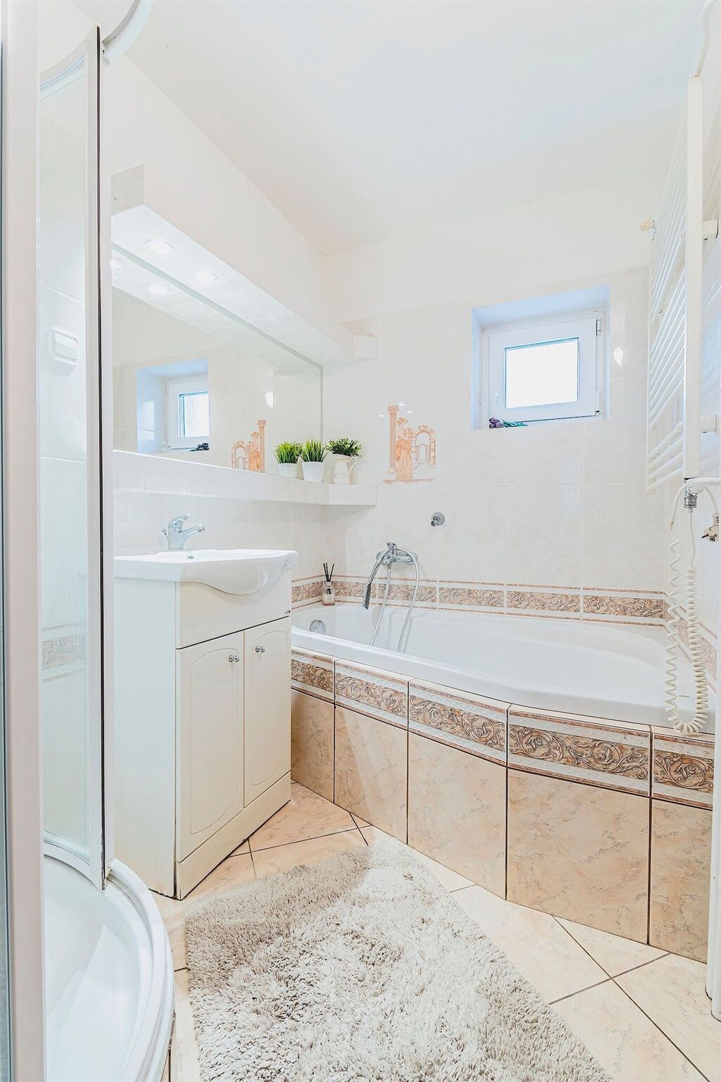Technické: okna plastová  trojskla, vytápění ústřední (ÚT) plynové  nový kondenzační kotel + kombinace s ÚT na tuhá paliva, pozemek oplocený. Budova je napojena na veškeré inženýrské sítě  tj. obecní vodovod + vlastní studna (oficiální a povolená), plynovod, el. 220/380V, obecní kanalizace, nechybí ani optický kabel pro rychlý internet. Střecha je plochá  krytina jsou asfaltové pásy (lepenka neboli "IPA"), v domě dvě komínová tělesa, stropy pod střechou a stropy nad sklepem jsou konstrukčně zateplené plynosilikátovou izolací, základy betonové, zdivo v suterénu betonové, stěny nadzemních podlaží jsou vyzděné z dobré poctivé pálené cihly, fasáda břizolitová.