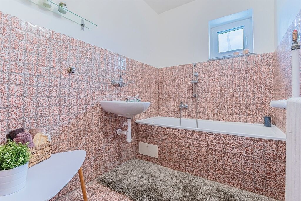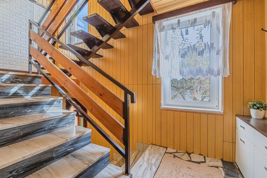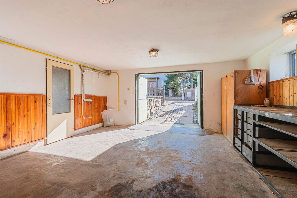 Další devízou domu je podzemní podlaží, které tvoří podsklepení po celým půdorysem a nachází se zde velká garáž s ponkem a další čtyři místnosti, kde mimojiné najdeme i nový plynový kondenzační kotel, dále původní kotel na tuhá paliva a také darling ke studni.