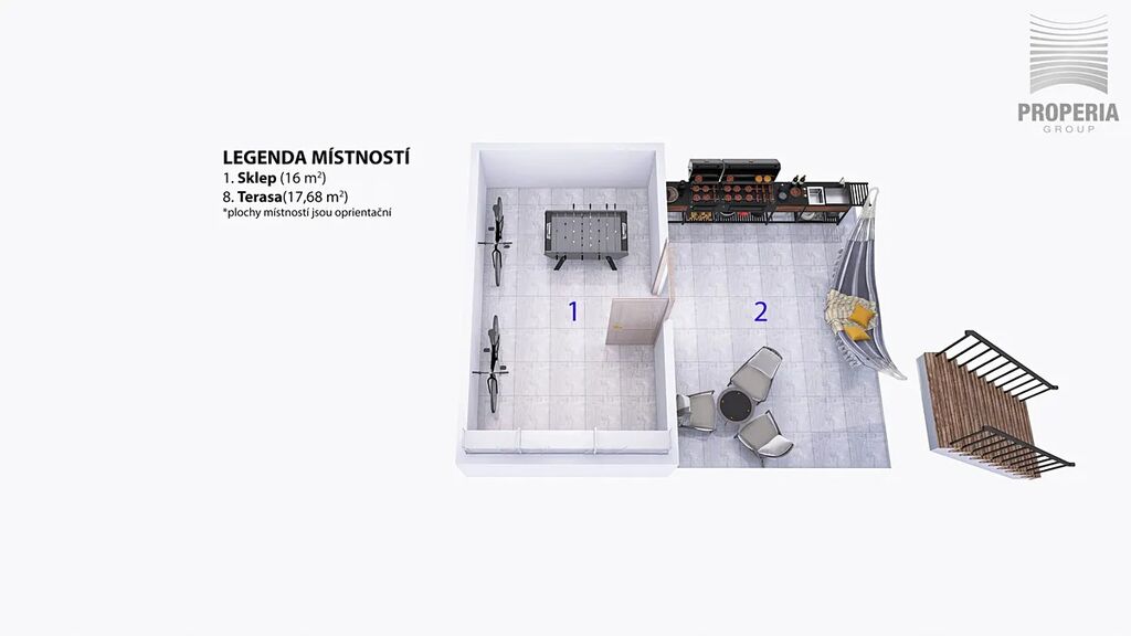 •	Prostorný obývací pokoj s kuchyňským koutem – cca 37 m²