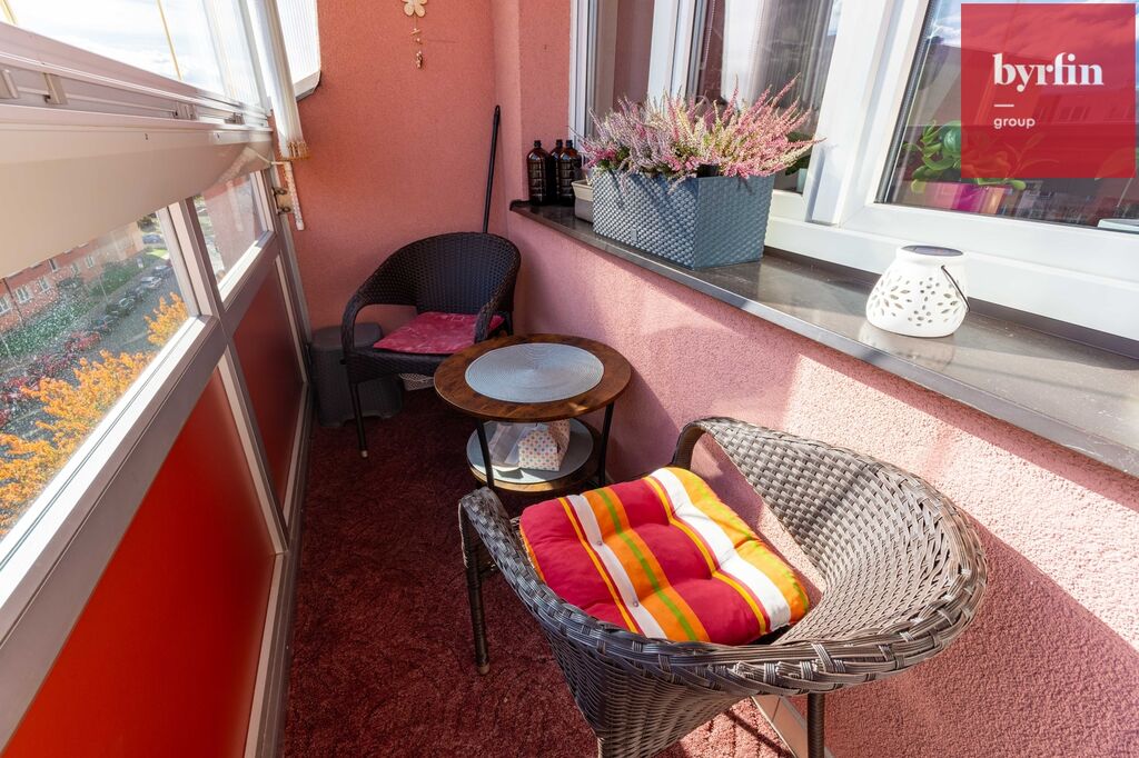 Dispozice nabízí světlý obývací pokoj s kuchyňským koutem, ložnici, koupelnu se záchodem a zasklený balkón, který poskytuje příjemné místo pro relax.