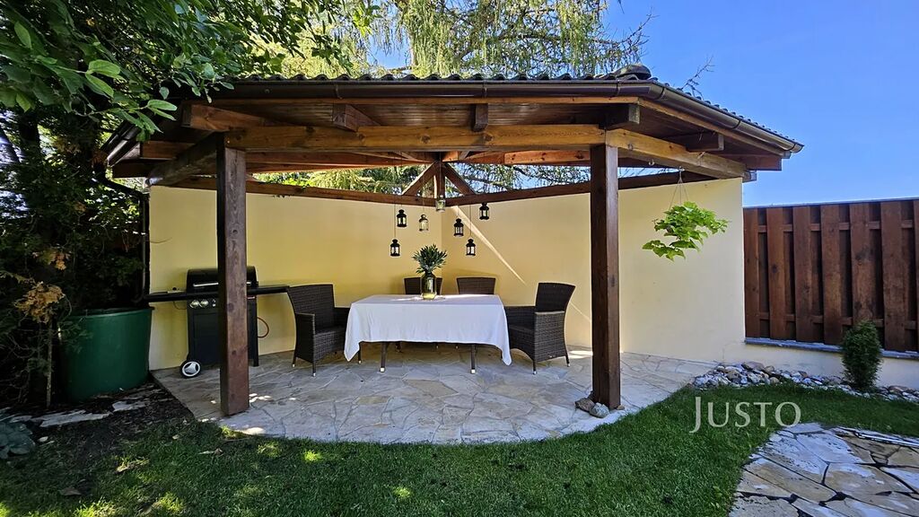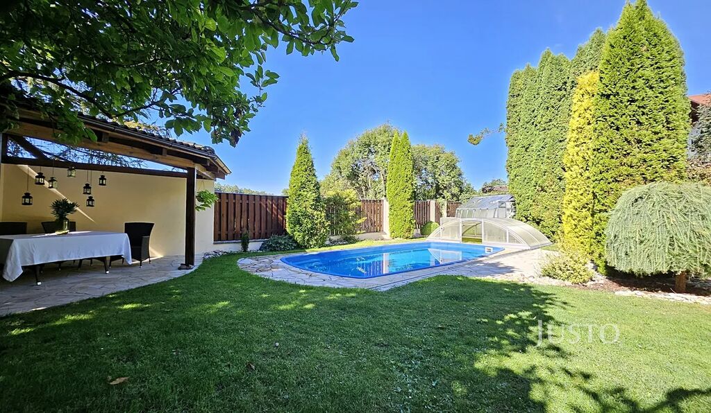 Výměra pozemku činí 777 m².  Zahrada nabízí soukromí a díky vzrostlé vegetaci je zde i v letních měsících i potřebný stín. Bazén a pergola dotváří příjemný letní kolorit. Podél domu se nachází zděný dřevník s palivem na několik topných sezón.