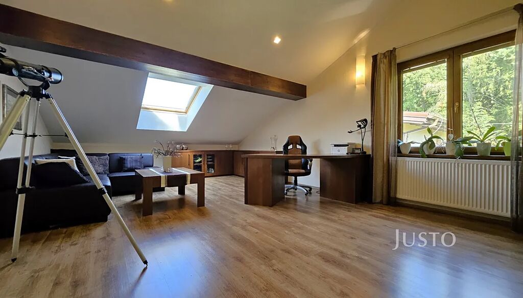 Podkroví skýtá vícero možností. Otevřená galerie (46,5 m²) nad obývacím pokojem může jako doposud sloužit k relaxaci nebo ji lze elegantně upravit na plnohodnotný obytný prostor. Na tento prostor navazuje pracovna (29,4 m²) a pokoj pro hosty (13,2 m²).