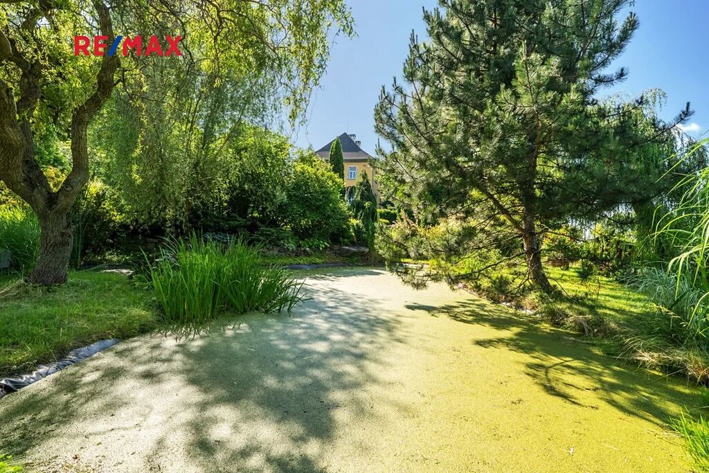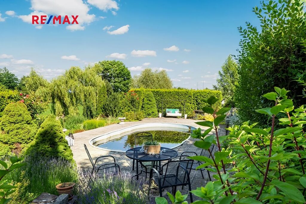 Součástí nemovitosti je členitá zahrada s vzrostlými dřevinami, ovocnými stromy a okrasnými záhony. V zahradě se nachází rybníček, bazén, posezení s výhledem do zeleně i intimní zákoutí vhodná pro klid a relaxaci. Prostor nabízí dostatek místa pro volnočasové aktivity i zahradničení.