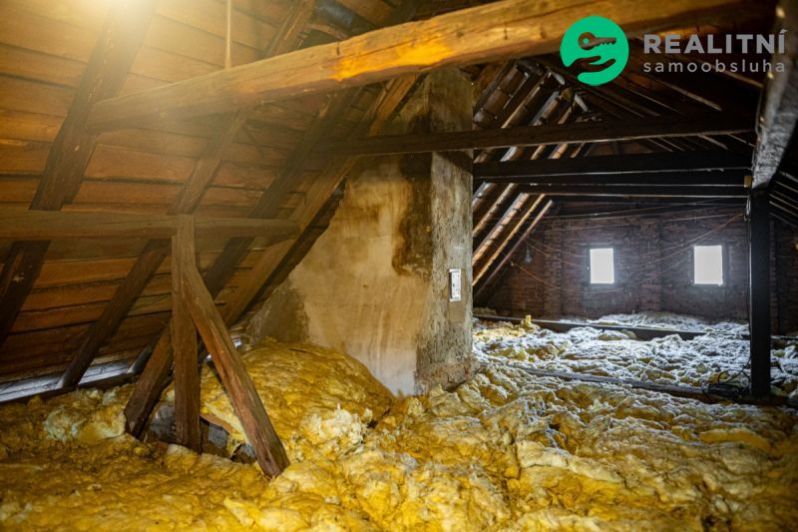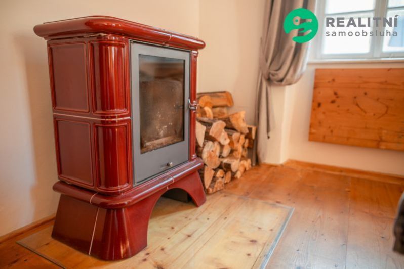 Uvnitř vás přivítají masivní dřevěné podlahy a původní pohledové trámy. V chladnějších dnech se o hřejivou atmosféru postarají krbová kamna napojená na nově vyvložkované komíny, která dodávají prostoru útulnost a klid. Dispozičně se přízemní část skládá z: 2x ložnice, obývák, kuchyně, chodba, koupelna, 2x WC. V zádveří z chodby se nachází spíž a podlouhlý úložný prostor. Hlavní zdroj vytápění je plynový kotel.