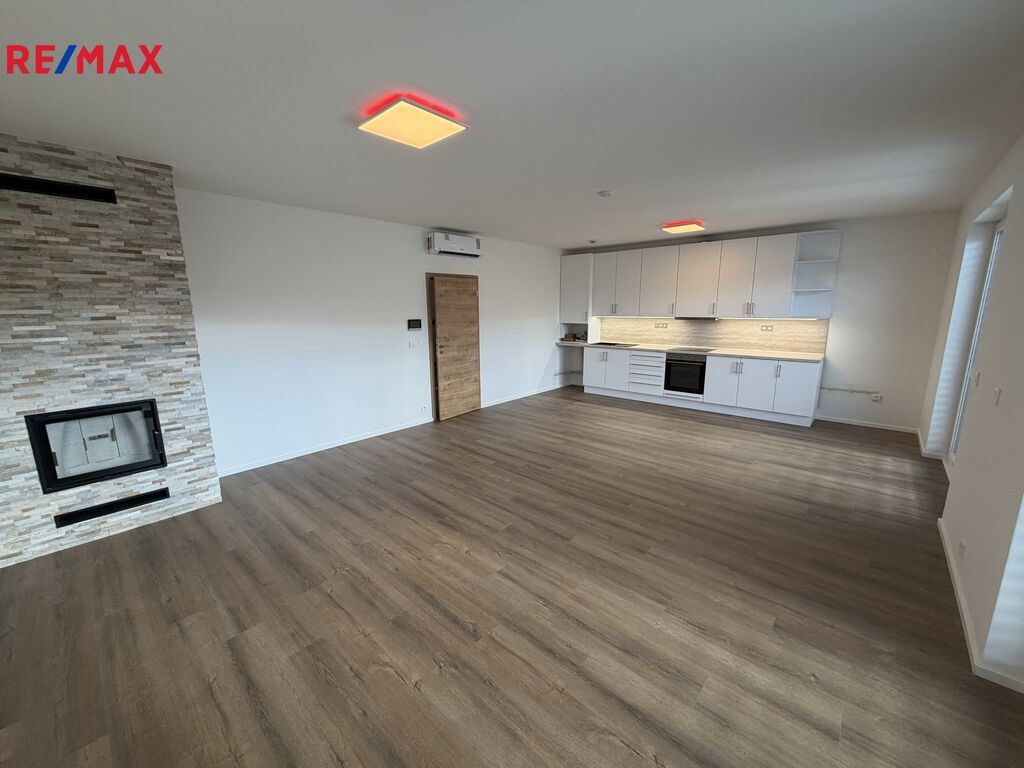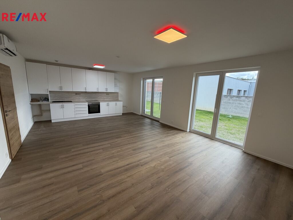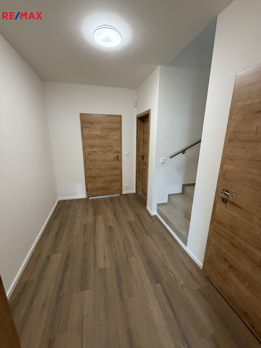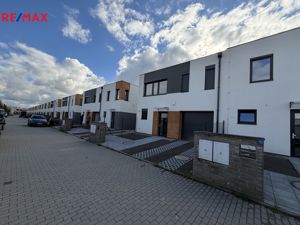 Jedná se o pronájem řadového rodinného domu 4+kk s garáží venkovním stáním před domem a zahrádkou za domem na ul. Vrbenská, Hostavice. Dispozičně je dům tvořen vstupní předsíní, 4,74m2, technickou místností 5,16m2, garáží 16,37m2 spojovací chodbou 6,75m2, WC 2,13m2, komorou pod schodištěm 1,82m2, obývacím pokojem s kuchyňským koutem 37,88m2 z něhož je vstup na zahradu za domem, v patře se nachází tři samostatné neprůchozí pokoje o výměrách 19,7m2, 16m2 a 12,62m2, dále koupelna s WC 4,92m2 a velká terasa určena pro celé toto podlaží. Celý dům disponuje el. ovládanými předokeními roletami, kamerovým systémem, který monitoruje okolí domu. Vytápění domu spolu s ohřevem TUV zajištuje tepelné čerpadlo vzduch-voda umístěné v technické místnosti. Pro více informací k nemovitosti kontaktujte makléře nabídky. Kauce 2x nájem, provize RK 1x nájem. Volné ihned.