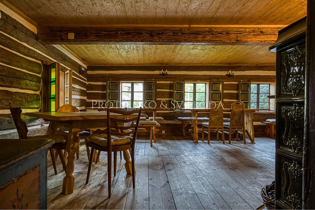 Centrem domu je velká společenská roubenka s kachlovými kamny a výčepem – srdce každého zimního večera či letního setkání s přáteli. Chalupa je obklopena krásně udržovanou zahradou s grilem, krbem a zastřešeným posezením. Pro děti je zde trampolína, pískoviště i bazén, pro dospělé pak klid a pohoda, kterou přináší okolní lesy a šumící příroda.
