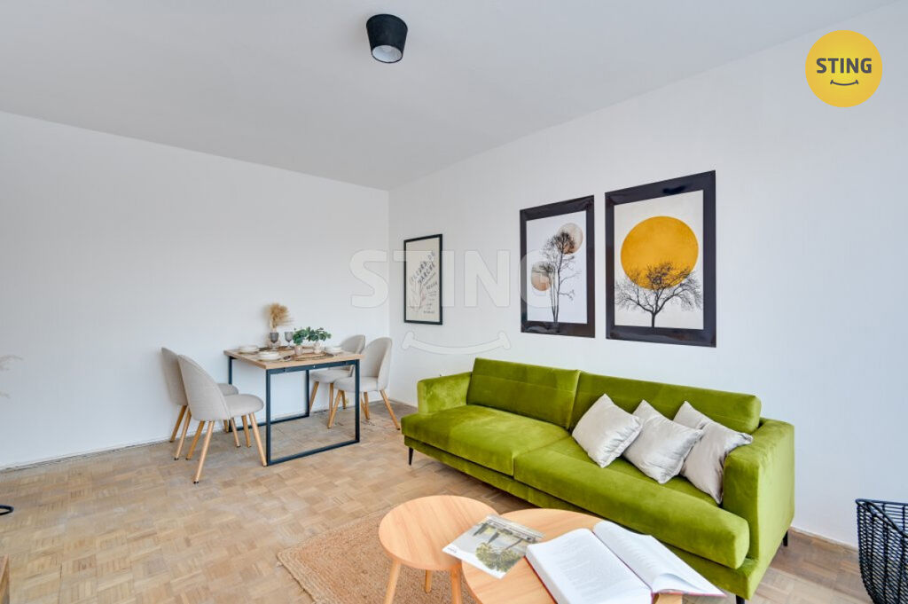 Byt se nachází v udržovaném stavu, což dává skvělou příležitost k případné úpravě dle vlastních představ. Dispozice je velmi praktická – prostorná vstupní chodba s komorou, samostatná kuchyň, obývací pokoj se vstupem na balkon, ložnice (tyto pokoje jsou orientovány do zeleně za domem), koupelna se sprchovým koutem a oddělené WC.