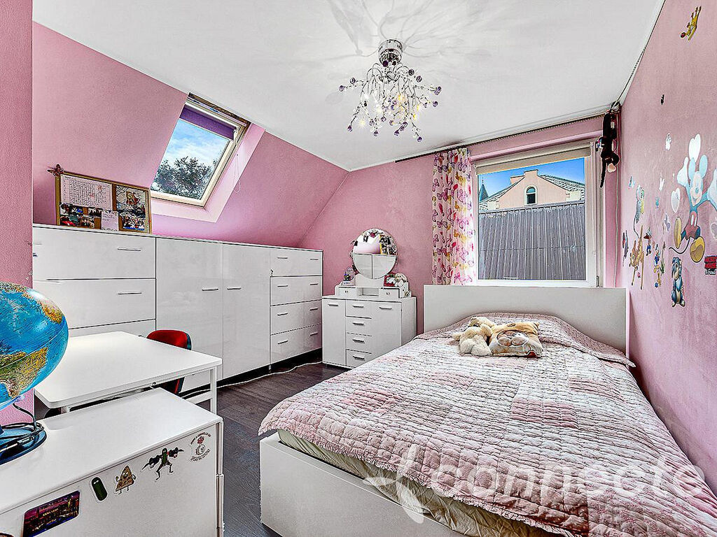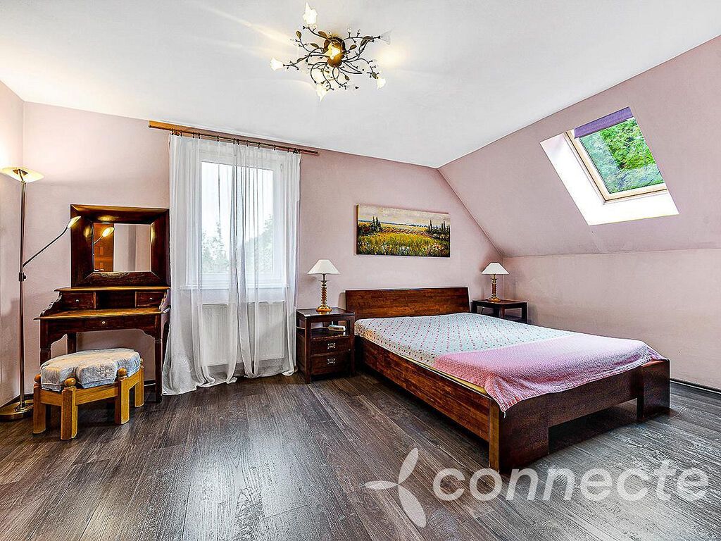 Po schodech vystoupáte do patra a vstoupíte do rozlehlé haly, která může být dalším plnohodnotným obývacím pokojem. Ideální místo na večerní posezení, než se vydáte spát. V prvním patře jsou k dispozici tři ložnice, přičemž největší z nich má svojí vlastní šatnu a vstup do koupelny s vanou a toaletou.