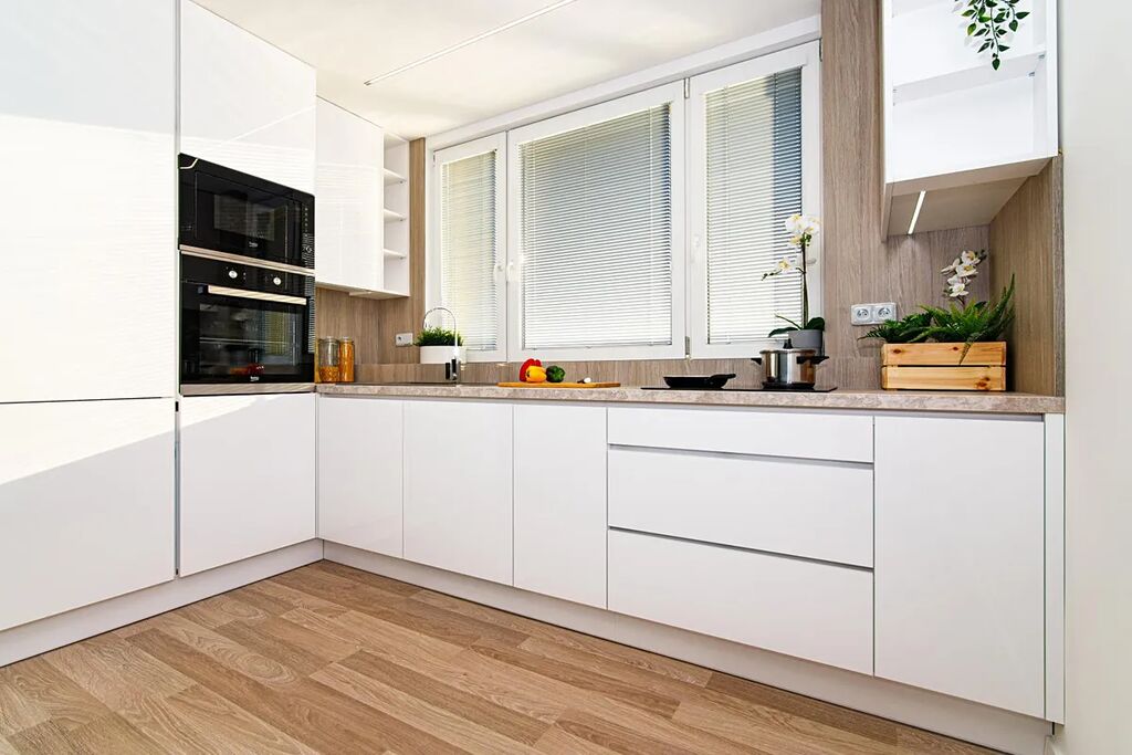 - Plnohodnotná kuchynská linka s vestavěnými spotřebiči, která bude plynule přecházet do obývací stěny
