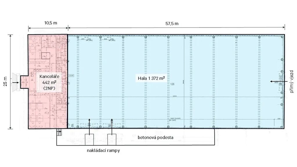Charakter dosavadního využití – skladovací hala s kancelářským zázemím a zpevněná plocha pro venkovní skladování.