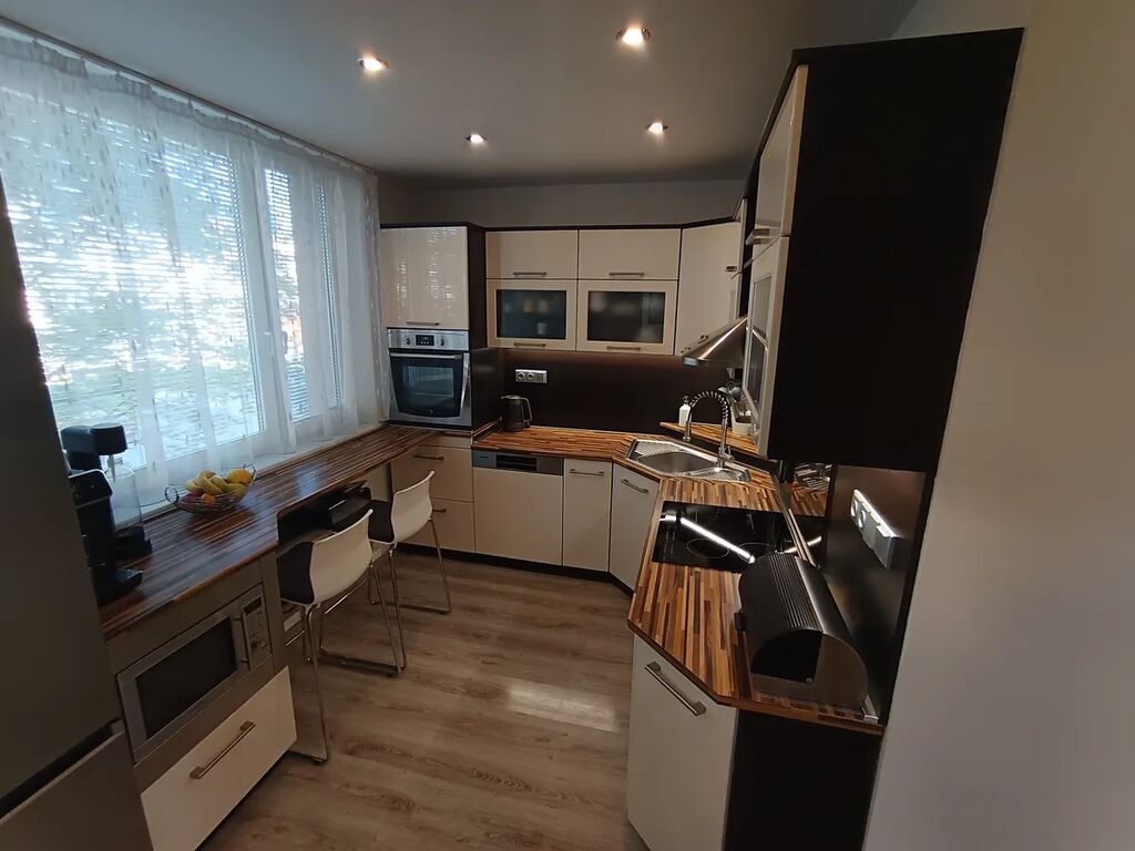Nabízíme k prodeji nadstandardní družstevní bytovou jednotku s lodžií o velikosti 3+1. Byt se nachází v 2. NP, podlahová plocha bytu je 75 m2. Byt je po kompletní rekonstrukci – zděné jádro, koupelna s prostorným sprchovým koutem, samostatné WC, kuchyňská linka včetně spotřebičů (el. trouba, varná indukční deska ), podhledy se světelnou LED technologií, podlahy, rozvody elektřiny, v ložnici je zhotovena příprava pro mobilní klimatizaci, rozvody pro optické připojení k internetu. Všechny pokoje jsou neprůchozí. Na každém patře pouze 2 byty!! Dům je po celkové revitalizaci (plastová okna, zateplení, výtah, kamerový systém, nová vlastní kotelna, fotovoltaické panely pro osvětlení společných prostor). K bytu náleží sklepní kóje. V místě veškerá občanská vybavenost. Doporučujeme náročnějším klientům, kteří ocenění kvalitní zpracování interiéru a dále klidné prostředí v těsné blízkosti lesoparku Hloučela.