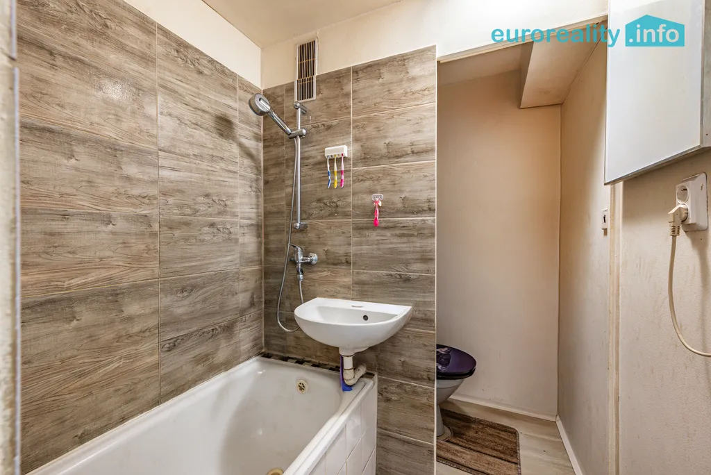 Byt má centrální dálkové vytápění a ohřev vody. Jsou zde koberce a plastová okna. V kuchyni zůstává zachovalá kuchyňská linka a je zde nově udělaná elektroinstalace v mědi. Koupelna je v původním, ale udržovaném stavu. Ostatní vybavení si současný majitel odnese, nový majitel tak získá čistý prostor připravený k nastěhování či úpravám.