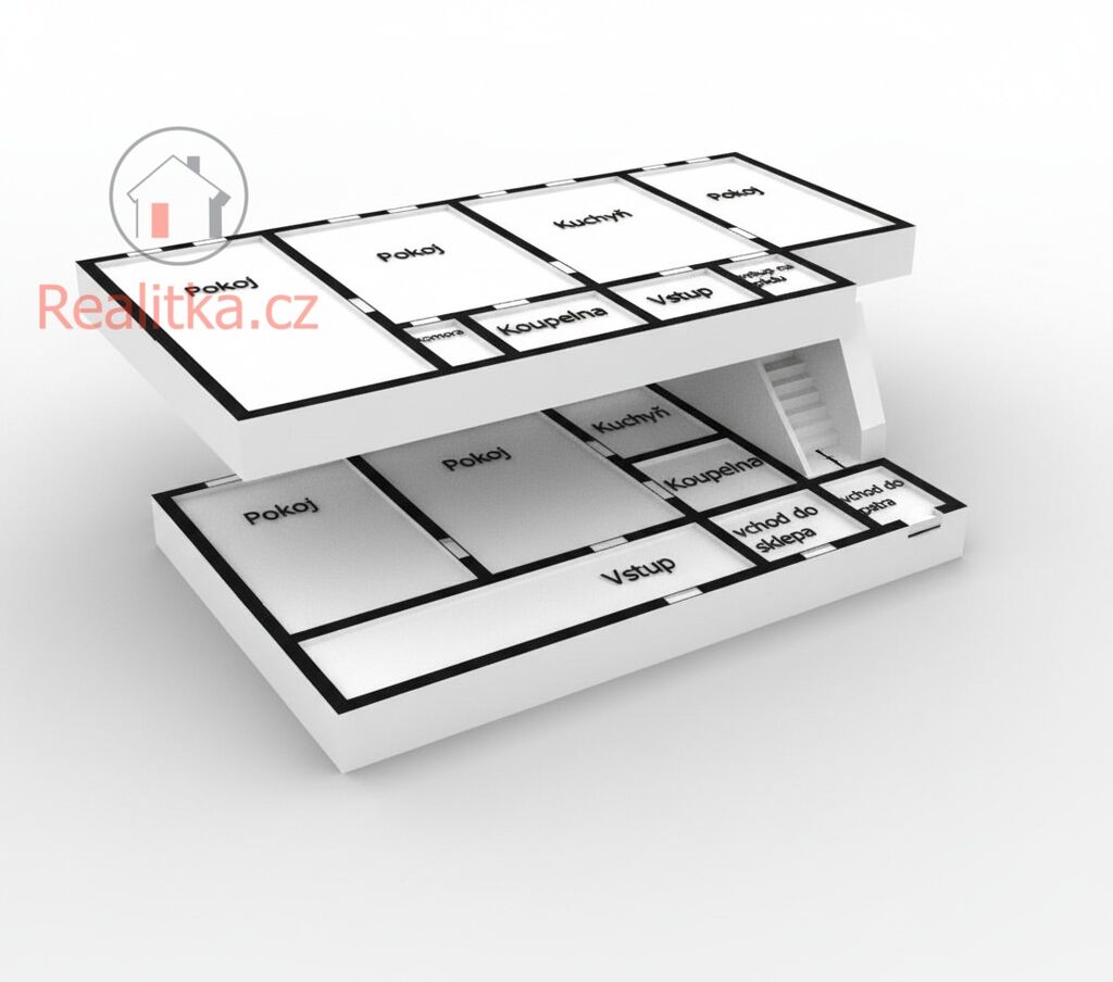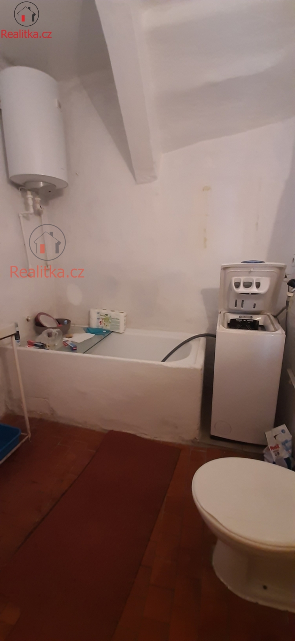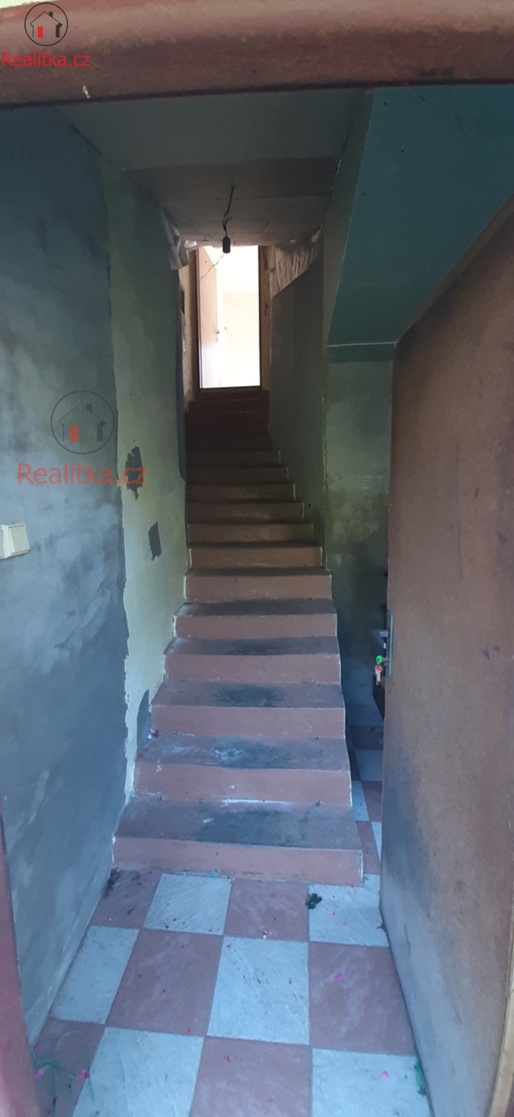 Dispozice domu: Přízemí: vstupní chodba, koupelna s WC, kuchyň, obývací místnost, ložnice. Patro: předsíň, vstup po schodech do patra, 4 pokoje, koupelna s WC, komora a vstup na půdu.  Dům je podsklepený, s průjezdem na pozemek. Je napojen na obecní vodovod a elektřinu a kanalizaci. Vytápění je řešeno elektrickým kotlem a případně kamny Petry, v domě lze využít také krbové vytápění. Ve sklepě pod domem jsou celkem 3 patra sklepů, spodní patro je vytesané do skály - pro zajímavost fotografie sklepa lze poslat emailem.  Nemovitost je v udržovaném stavu, ale nabízí dostatek prostoru pro rodinu i možnost úprav dle vlastních představ.  Cena k jednání.