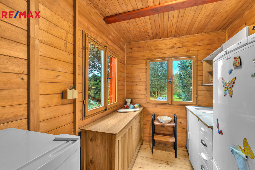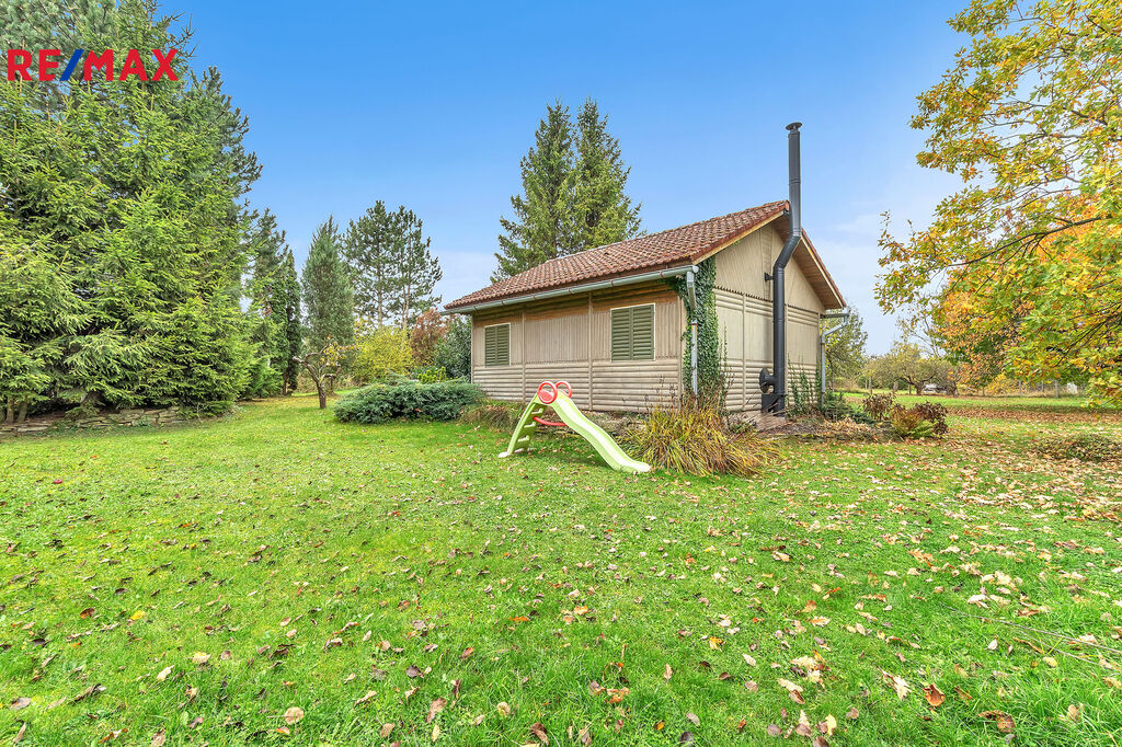 Na pozemku stojí rekreační chata o zastavěné ploše 35 m² a podlahové ploše 31 m², která prošla rekonstrukcí v roce 2022.