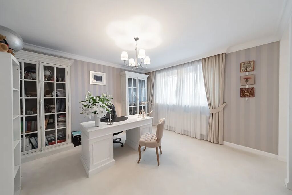 V přízemí se nachází prostorný obývací pokoj s vysokými stropy a originálním designovým řešením o rozloze přibližně 100 m², který je propojen s moderní kuchyní. Součástí tohoto podlaží je také garáž pro dvě auta s přímým vstupem do domu, hostinská toaleta a technická místnost vybavená pračkou a sušičkou. Na stejném podlaží je útulná ložnice s vlastní koupelnou, toaletou a šatnou.