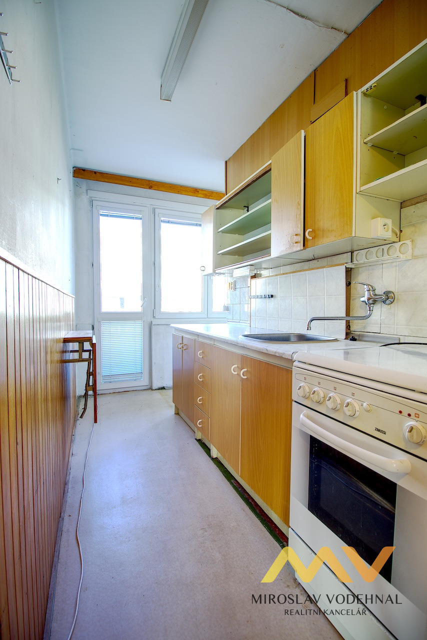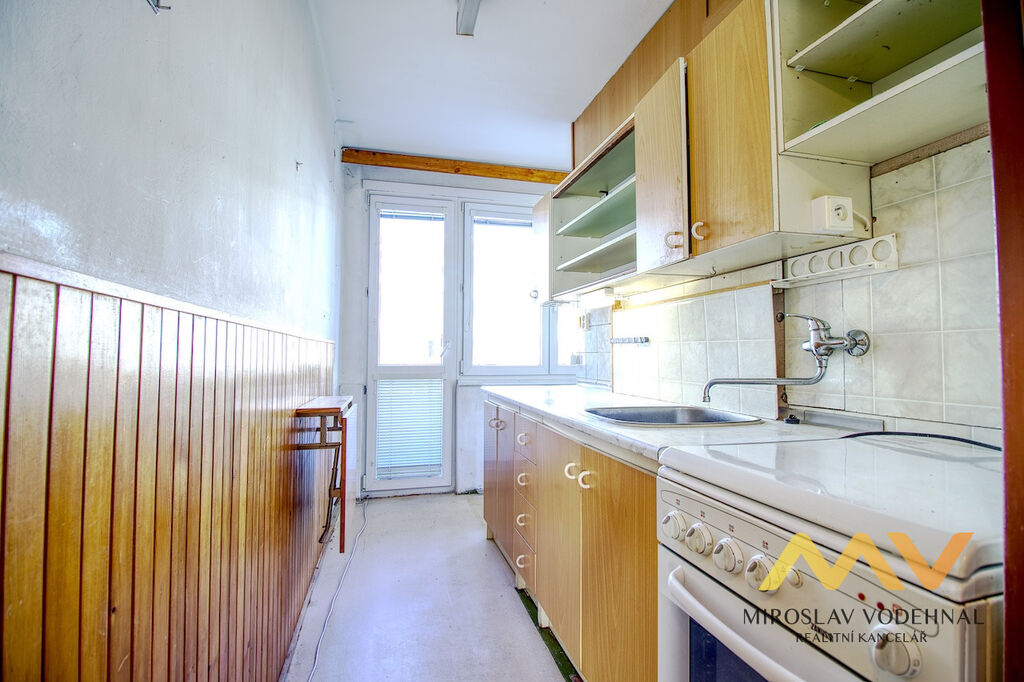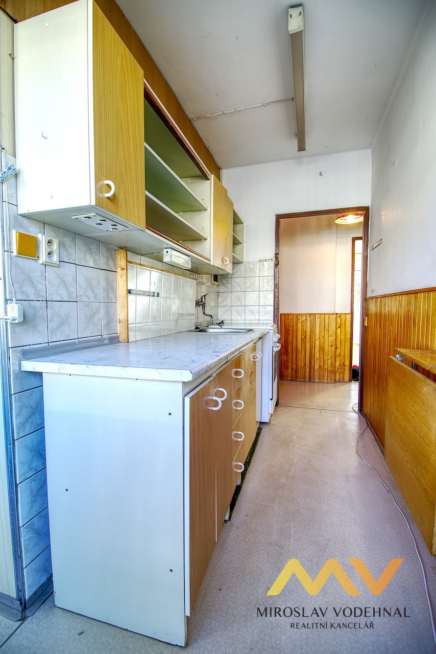 Dispozice: kuchyň, 2x pokoj, koupelna, WC, předsíň, balkón, sklepní kóje. Jedná se o byt v původním stavu a nabízí možnost rekonstrukce i úprav dispozice dle vlastních představ nebo potřeb. Byt má umakartové jádro, okna jsou plastová. Pokoje jsou samostatné, neprůchozí. Kuchyň, ze které je přístup na balkón (3 m2), je zařízena kuchyňskou linkou s plynovým. sporákem. V předsíni je vestavná skříň. Koupelna se zánovním sprchovým koutem, toaleta je samostatně. K bytu náleží sklepní kóje a k dispozici je společná kolárna.