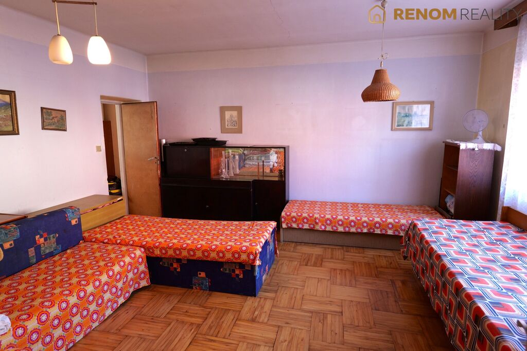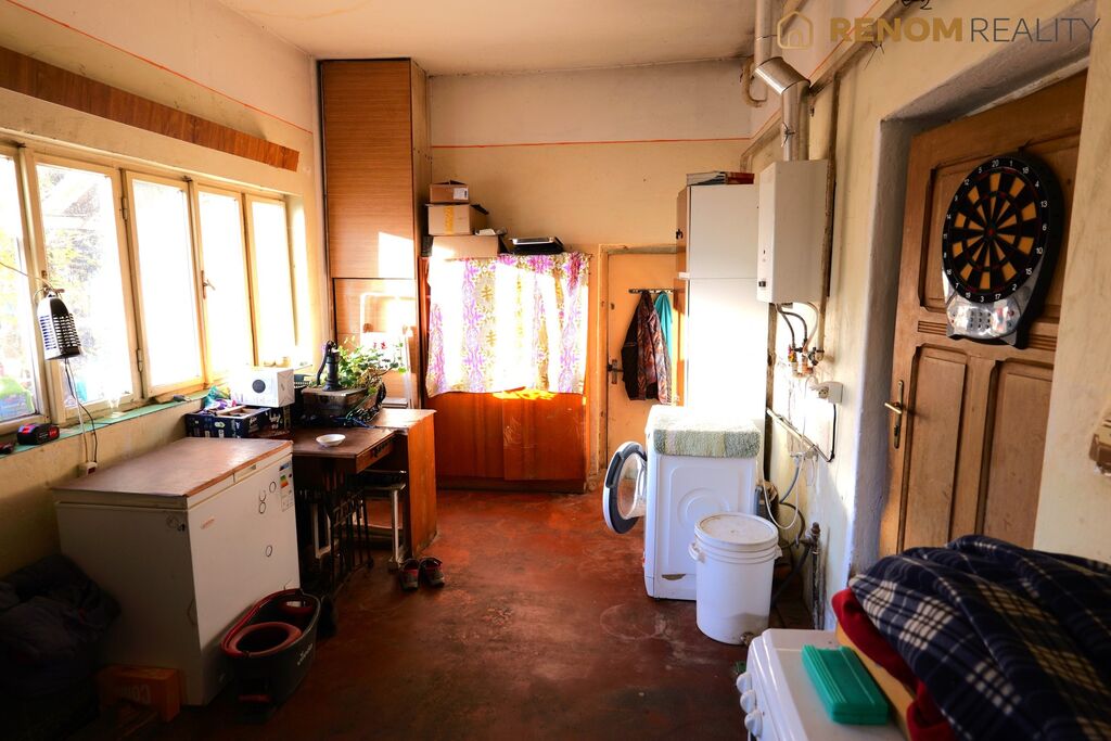 Prodej rodinného domu 4+1 se zahradou a garáží, ul. Hrad, Chropyně. Jedná se o koncový řadový dům s 1 nadzemní podlažím (bez obytného podkroví). Za domem se nachází rozsáhlá zahrada 2.545 m2 navazující na Zámecký rybník (klidné místo). Možný příjezd k zahradě přes polní cestu. Celková plocha pozemků činí 2.999 m2. Na pozemku se dále nacházejí vedlejší stavby - garáž, hospodářská stavba a drobné hospodářské přístavky.