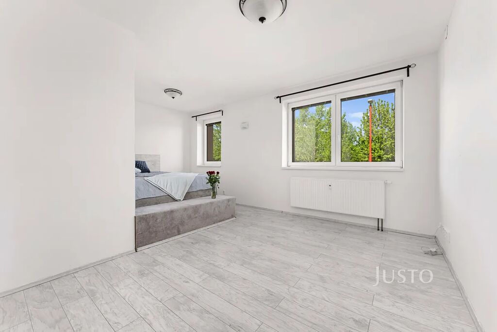 Byt je částečně vybavený, v kuchyni jsou elektrospotřebiče - pračka, myčka, sušička, elektrická varná deska, lednice.