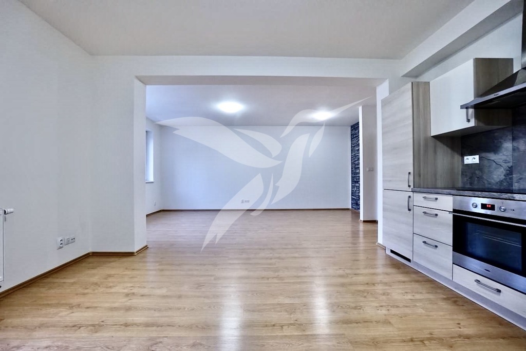 Byt se nabízí nezařízený, součástí je kuchyňská linka se spotřebiči (vestav. deska, trouba, lednice s mrazákem, myčka, digestoř).