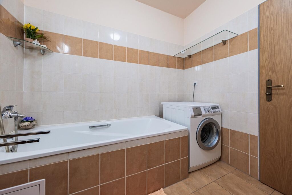 Byt se nachází ve 2.NP v domě s výtahem. Byt je v perfektním stavu, kuchyňská linka na míru se spotřebiči, na podlahách plovoucí podlaha a dlažba, velmi prostorná šatna, prostorný balkón, dále vše viz foto. Díky poloze, moderním standardům a nízkým provozním nákladům je byt atraktivní jak pro vlastní bydlení, tak pro investici.