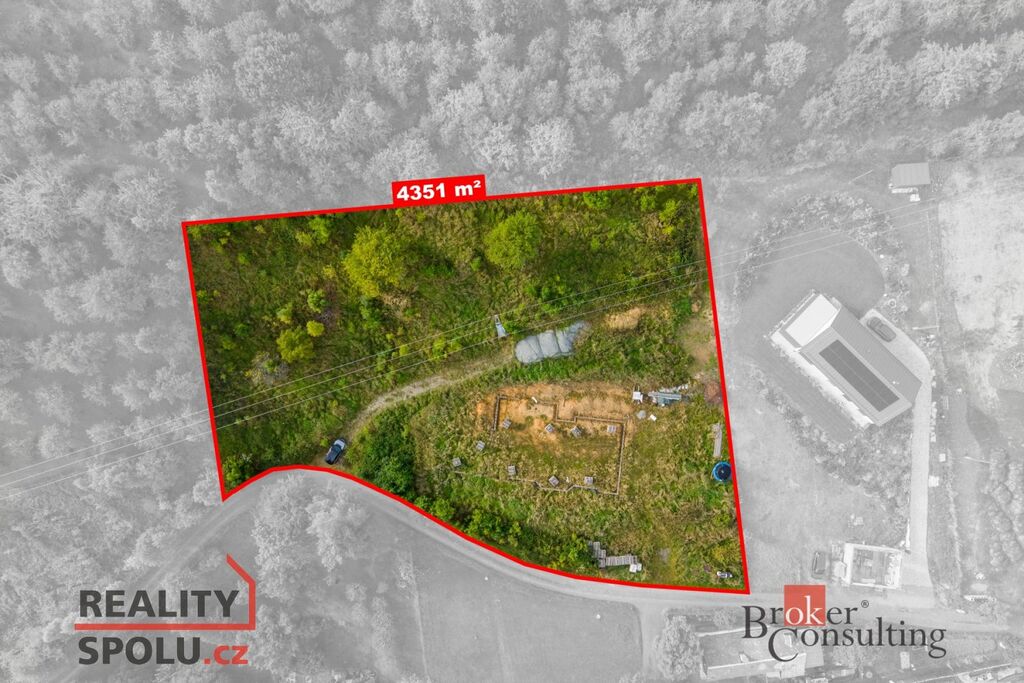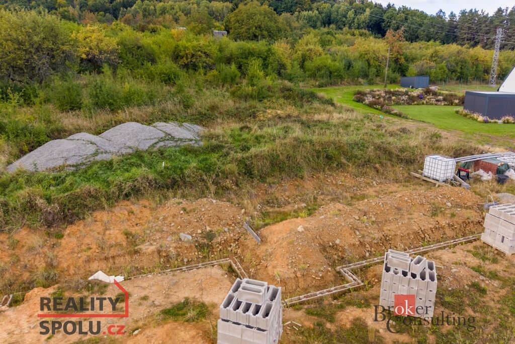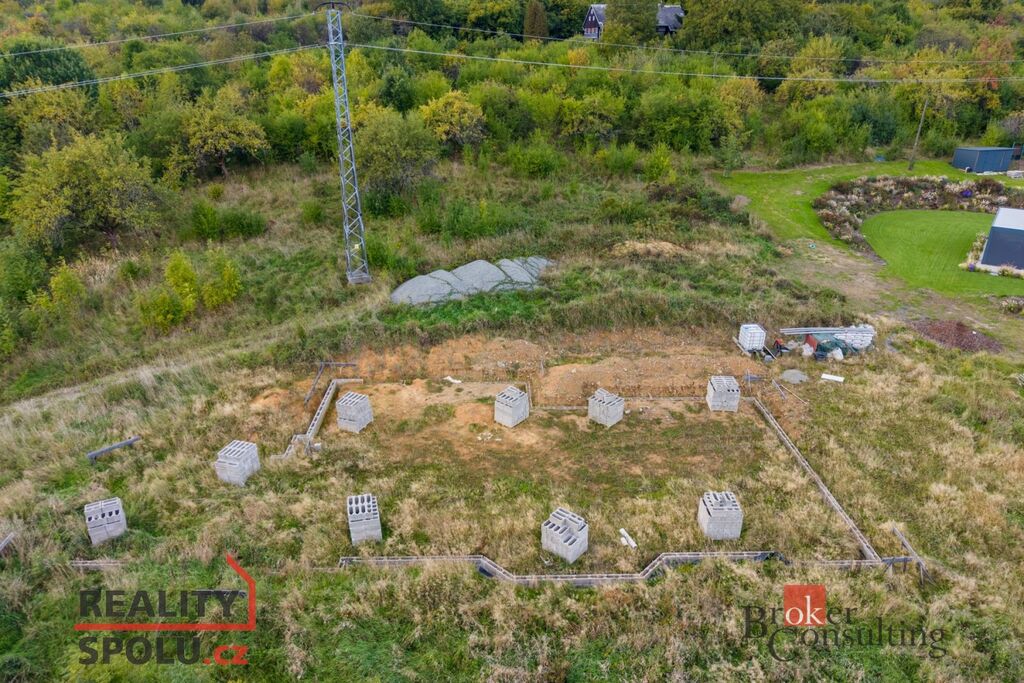 Parcely jsou připravené pro výstavbu, projekt je rozpracovaný a základy domu již položeny.