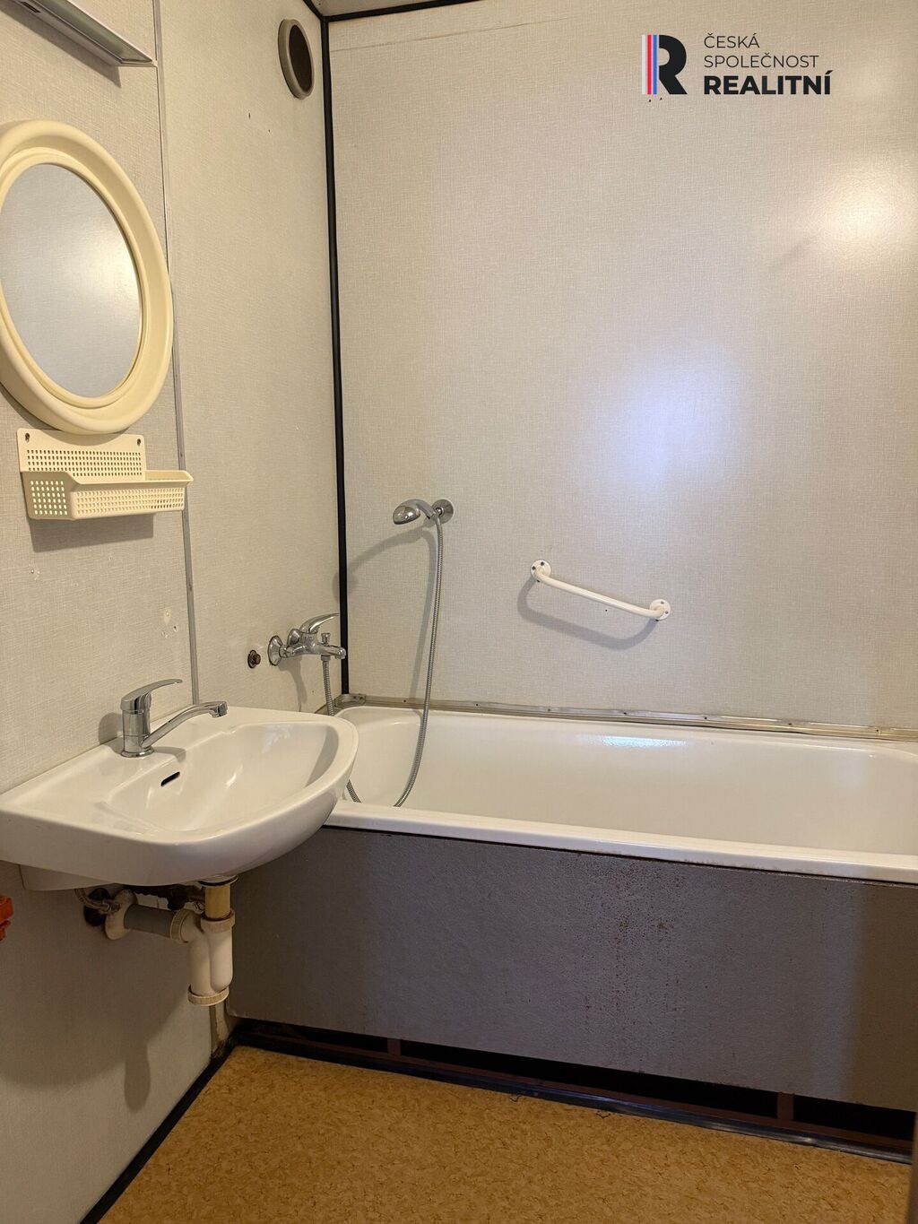 Byt disponuje menší kuchyní 7m2 s jídelní částí a plynovým sporákem. Obývákem se vstupem na zasklenou a zabezpečenou lodžii, koupenou s vanou a samostatným WC (původní umakartové jádro), vstupní halou s vestavěnou skříní a samostatným menším pokojem 11m2.