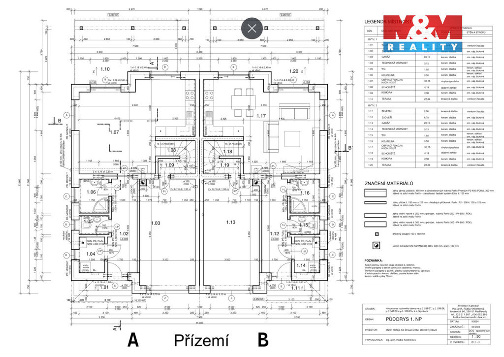 Jedná se o rodinný dům, který BUDE DOKONČENÝ a ZKOLAUDOVANÝ, je rozdělen na dvě poloviny - bytové jednotky (A a B), každá se prodává zvlášť, je zcela samostatná, s vlastním vchodem, garáží a zahradou s pergolou.