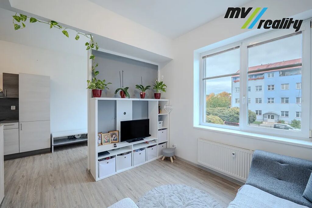 Dispozice bytu je původně 1+1, avšak díky chytře upravenému řešení působí jako 2+1.
