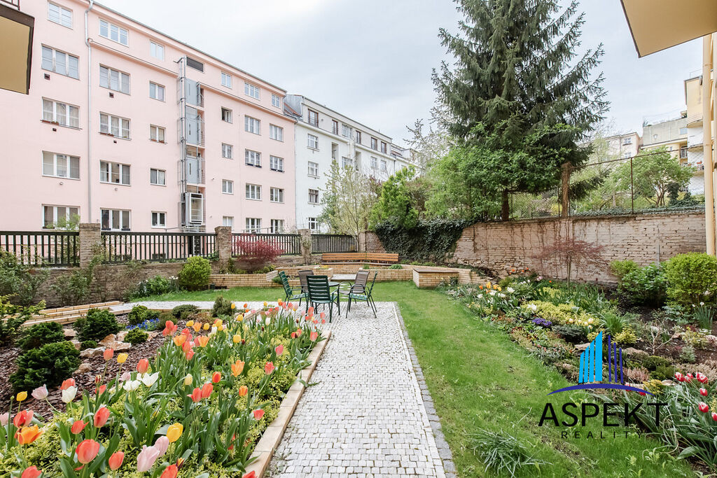 K bytové jednotce patří také důležité společné prostory, jako je zahrada ve vnitrobloku, kočárkárna s přímým vstupem z ulice a sklep, což výrazně zvyšuje komfort bydlení.