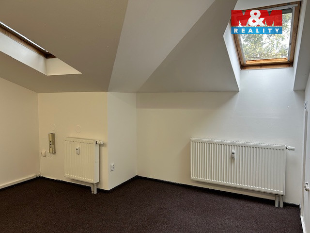 Nebytové prostory vhodné jako kanceláře, které nabízí široké možnosti využití k podnikání. Útulná kancelář o rozměrech 14 m2 se nachází v komerčním objektu v samém centru města. Prostory jsou vybaveny klimatizací, která v létě vytváří příjemné prostředí. WC a kuchyňka na patře. Vlastní parkoviště u objektu. Cena bez služeb a energií. Zálohy na služby jsou 800,- Kč měsíčně. Zálohy vodné a stočné 1000,- Kč na rok. Odvoz odpadu 1000,- Kč na rok. Výborná cena! Poplatek RK ve výši 4 000,- Kč + DPH. Kauce jeden měsíční nájem.