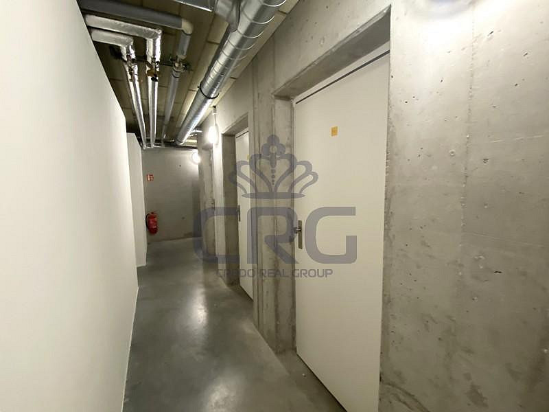 Sklep i parkovací stání se nachází v prvním podzemním podlaží. Do garáže je vjezd z boku budovy.