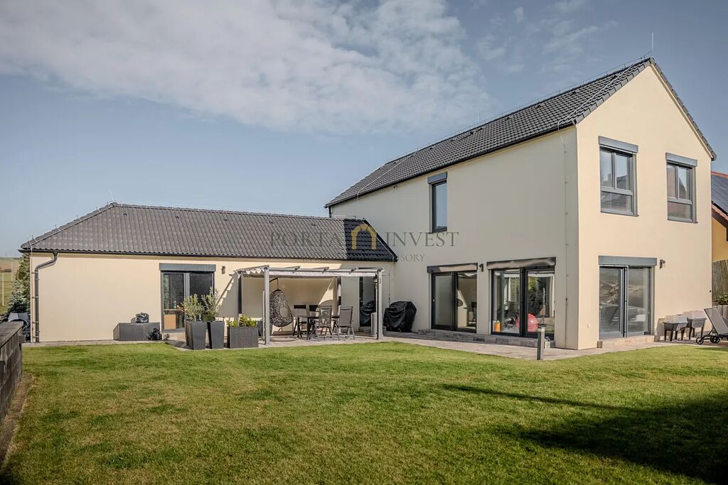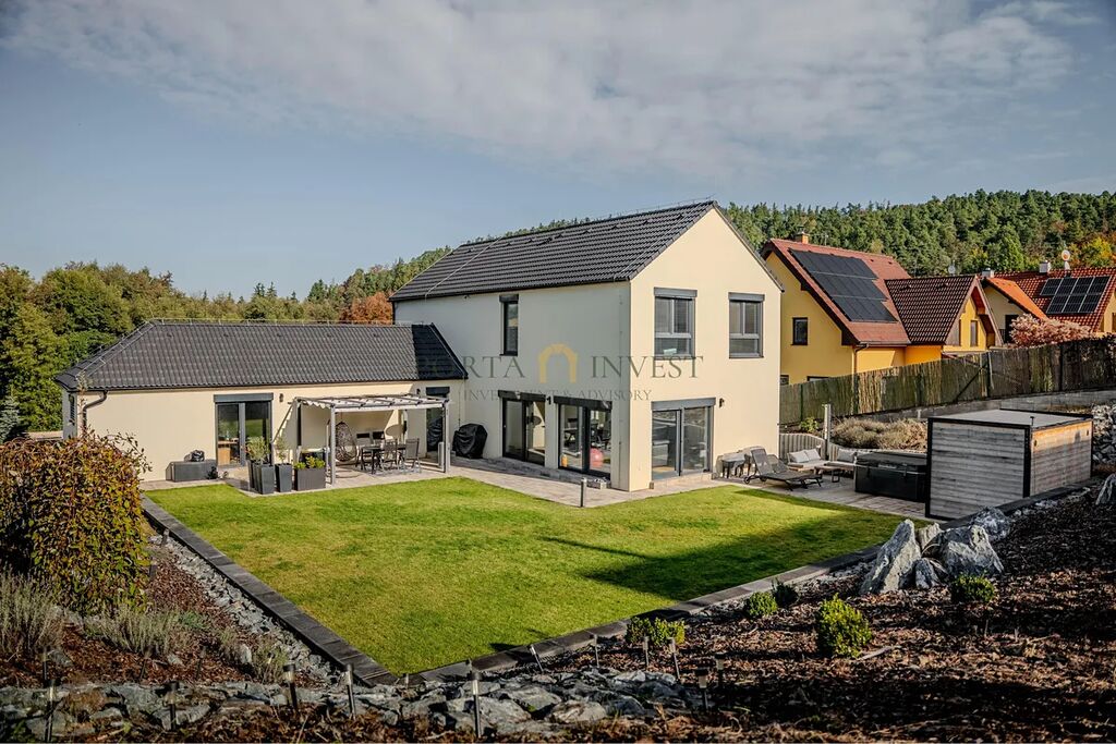 Nabízíme k prodeji prostorný a zároveň útulný rodinný dům 6+1 se zahradou (celková plocha pozemku 1315 m2), v klidné lokalitě městské části Plzeň 9 – Malesice. Stavba, kolaudovaná v roce 2023, má půdorys písmene L s velmi příjemnou jižní a západní orientací. Centrální místností domu je obývací pokoj s francouzskými okny a výhledem do zahrady, propojený s jídelnou a plně vybavenou kuchyní. V přízemí se dále nachází samostatná ložnice s vlastní šatnou a koupelnou se sprchovým koutem a toaletou. V patře jsou tři samostatné pokoje, praktická šatna, koupelna s vanou a sprchovým koutem a samostatné WC. K dispozici jsou i další promyšlené úložné prostory (vestavné skříně, nábytek).