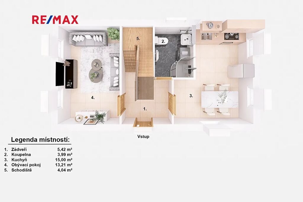 A pak je tu veranda – místo, které si zamilujete. Ideální na ranní kávu, večerní víno nebo prostě jen chvilku, kdy necháte svět běžet dál. Na zahradě najdete i ohniště, kde si můžete opéct buřty s přáteli, poslouchat cvrčky a dívat se do plamenů. K domu patří ještě elektrifikovaná garáž, kolna na dřevo a prostorný pozemek s dostatkem místa pro odpočinek i zahradničení.
